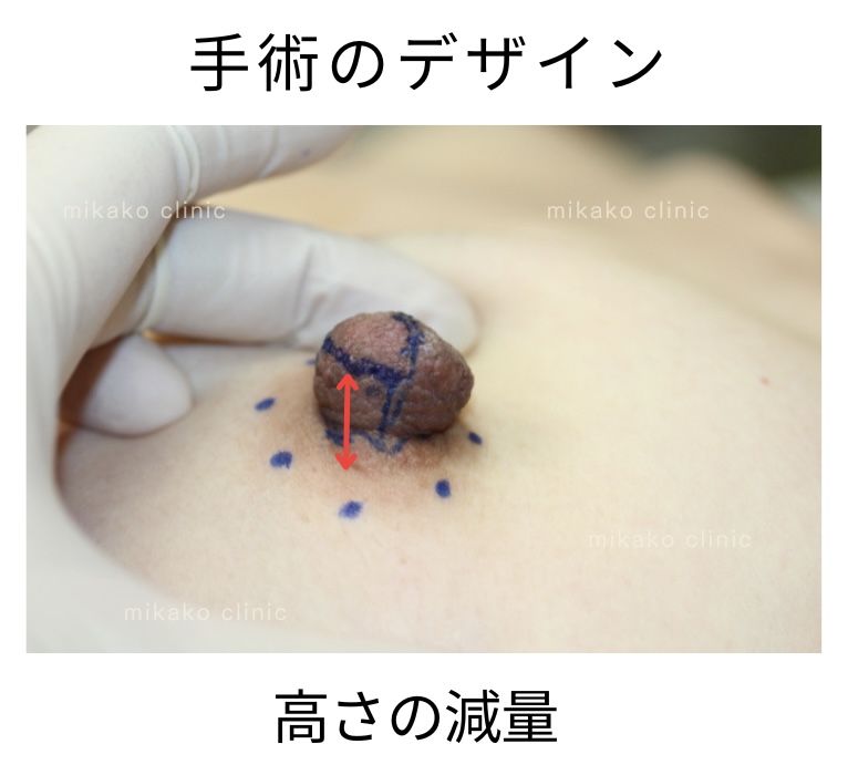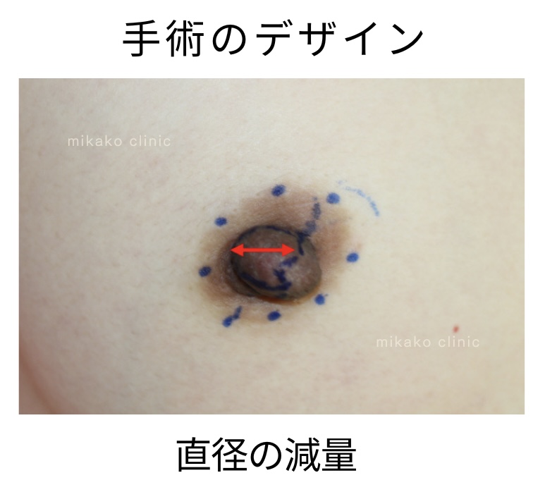 今後は授乳の予定がないとのことでしたので、『乳頭縮小術』を行うことにしました。